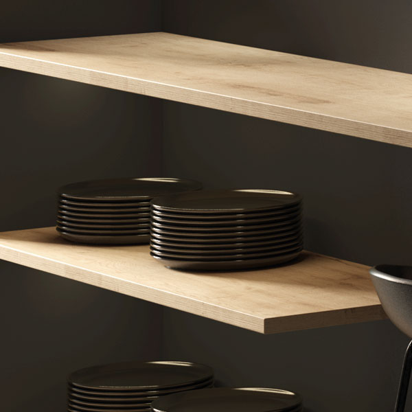 Tablero laminado, recubierto de papel decorativo mate y canteado en su color.